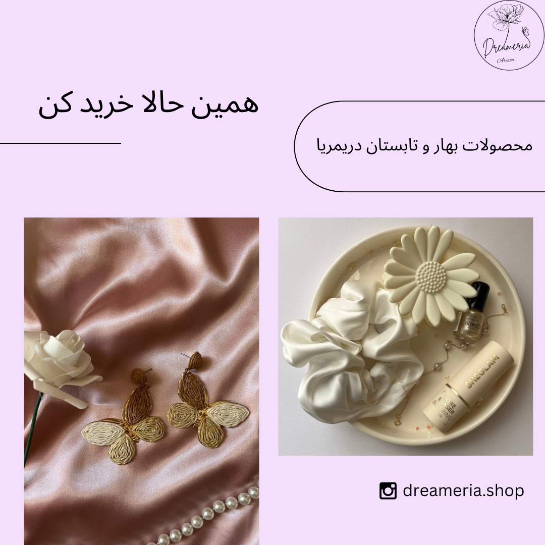در دریمریا، ما با دقت و سلیقه مجموعهای از کشهای ساتن، کلیپسهای شیک و گوشوارههای جذاب و شال های نخی با کیفیت فراهم کردیم تا بتونی با کمترین هزینه، استایلی خاص و دوستداشتنی بسازی.