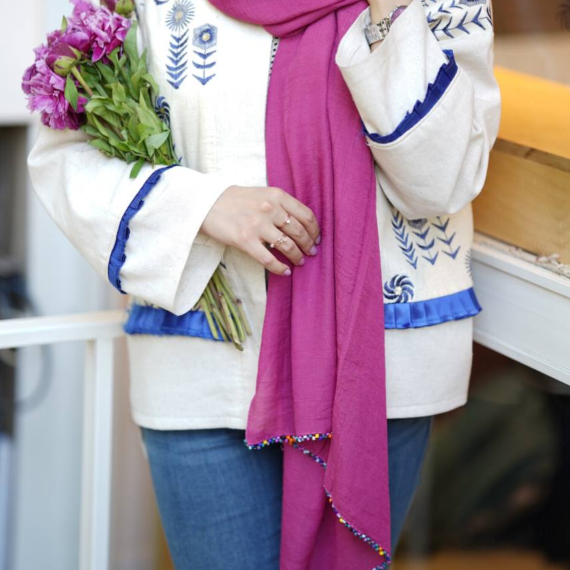 شال تابستانی نخی با دوردوزی سنگ