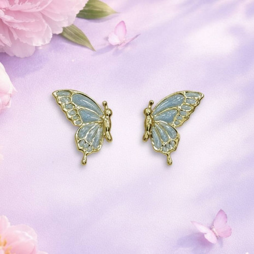 گوشواره پروانه میناکاری فیروزه ای طلایی
