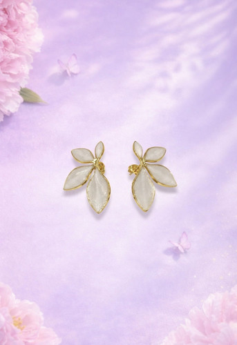 گوشواره گل سفید و طلایی