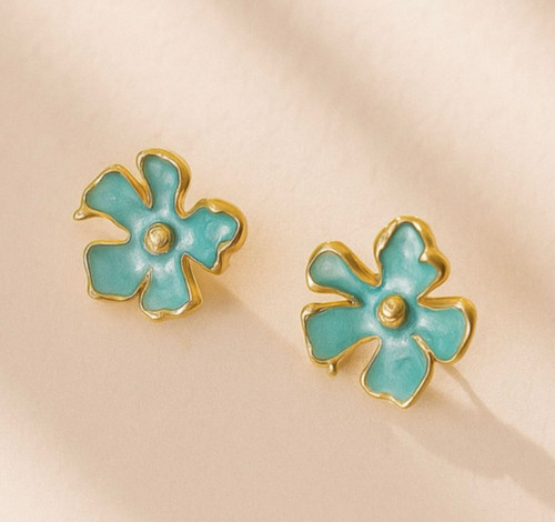 گوشواره میناکاری گل فیروزهای طلایی