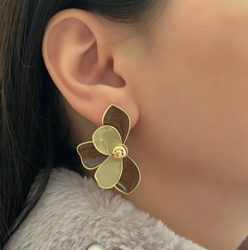 گوشواره طرح گل میناکاری دور طلایی ترند