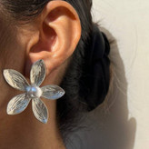 گوشواره گل فلزی مروارید رنگ نقره ای