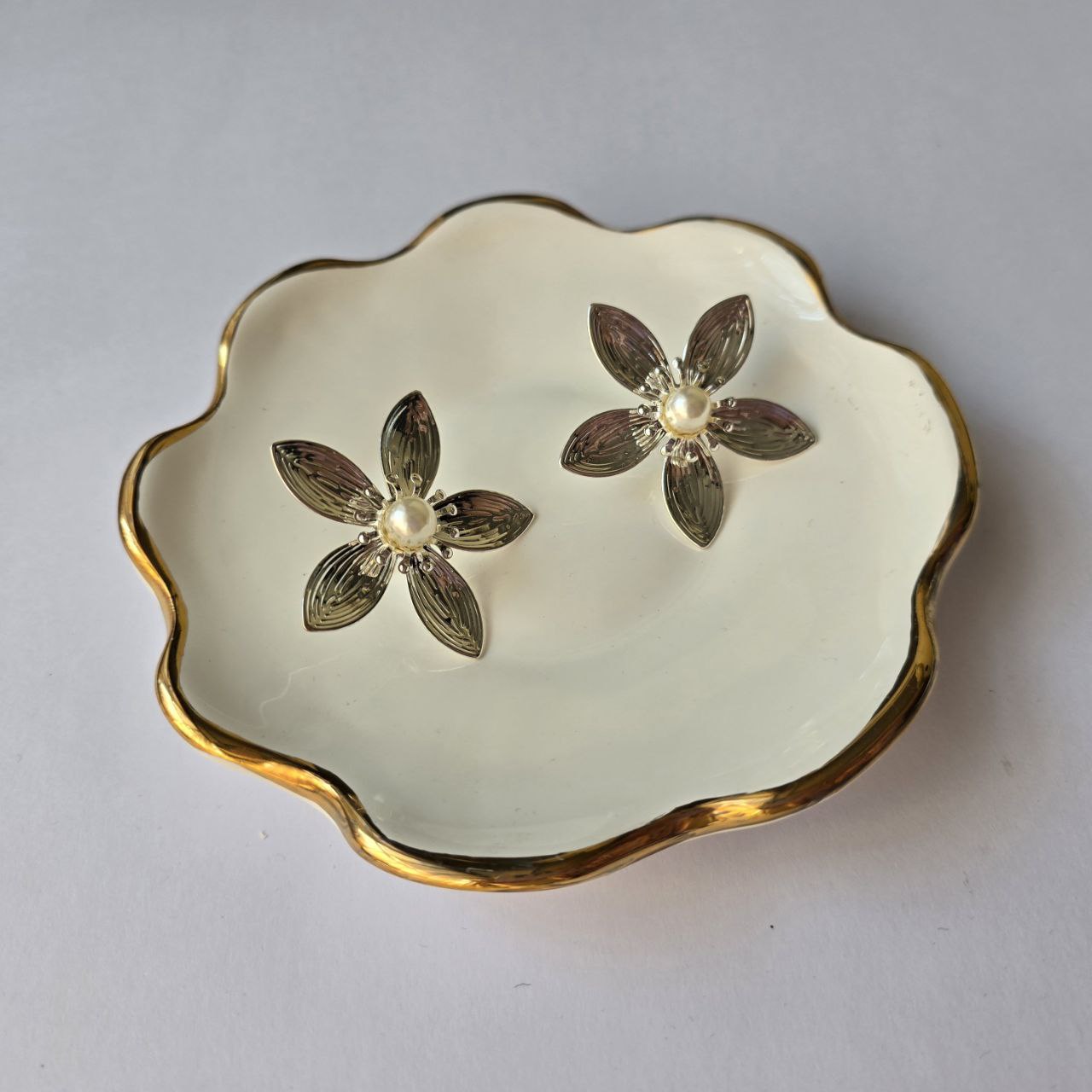 گوشواره گل فلزی مروارید رنگ نقره ای