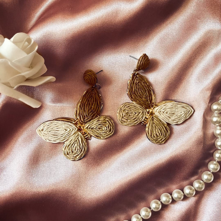 ست جدید گوشواره هایحصیری طرح پروانه مناسب استایل های شیک و تابستانی
