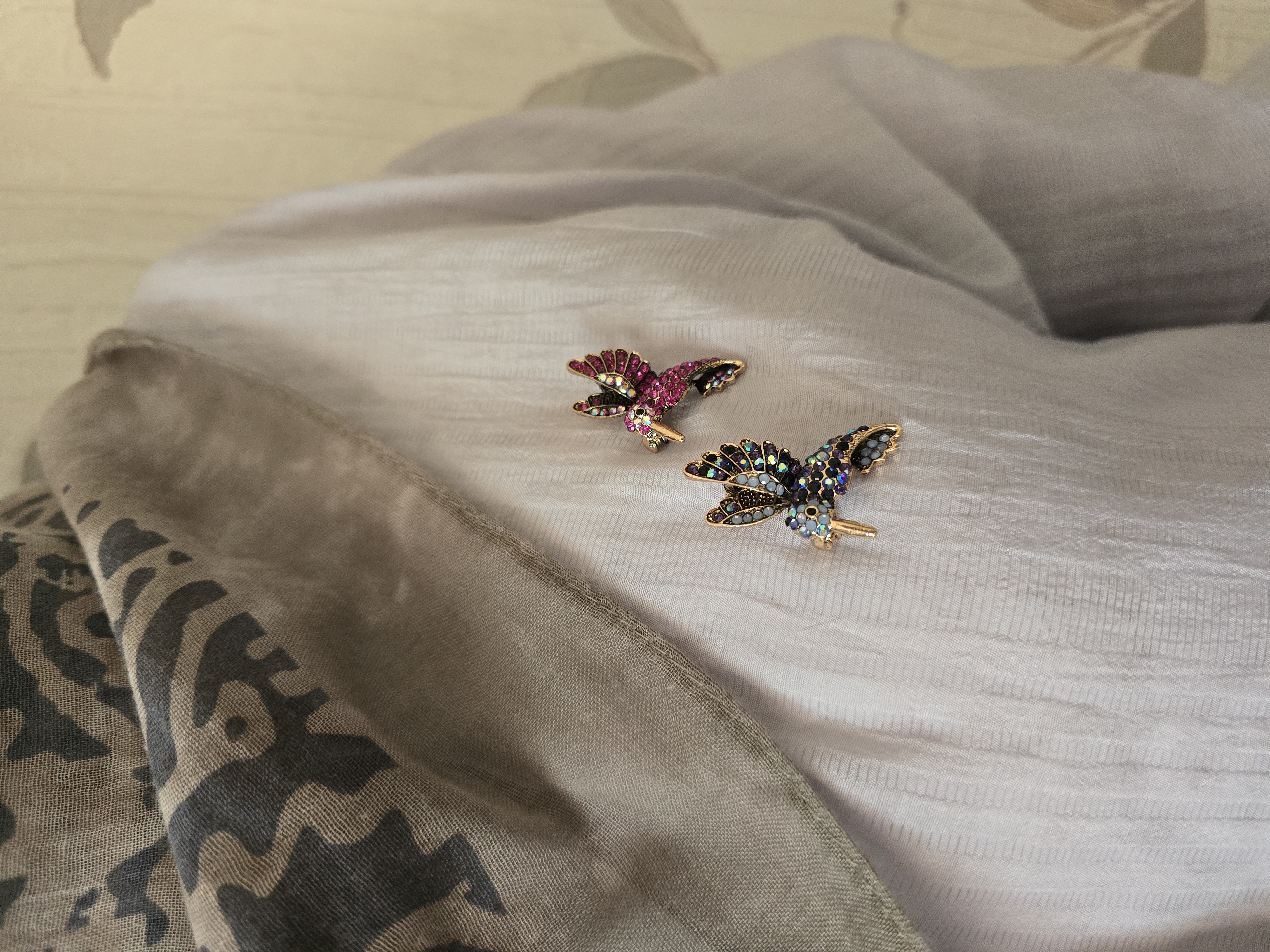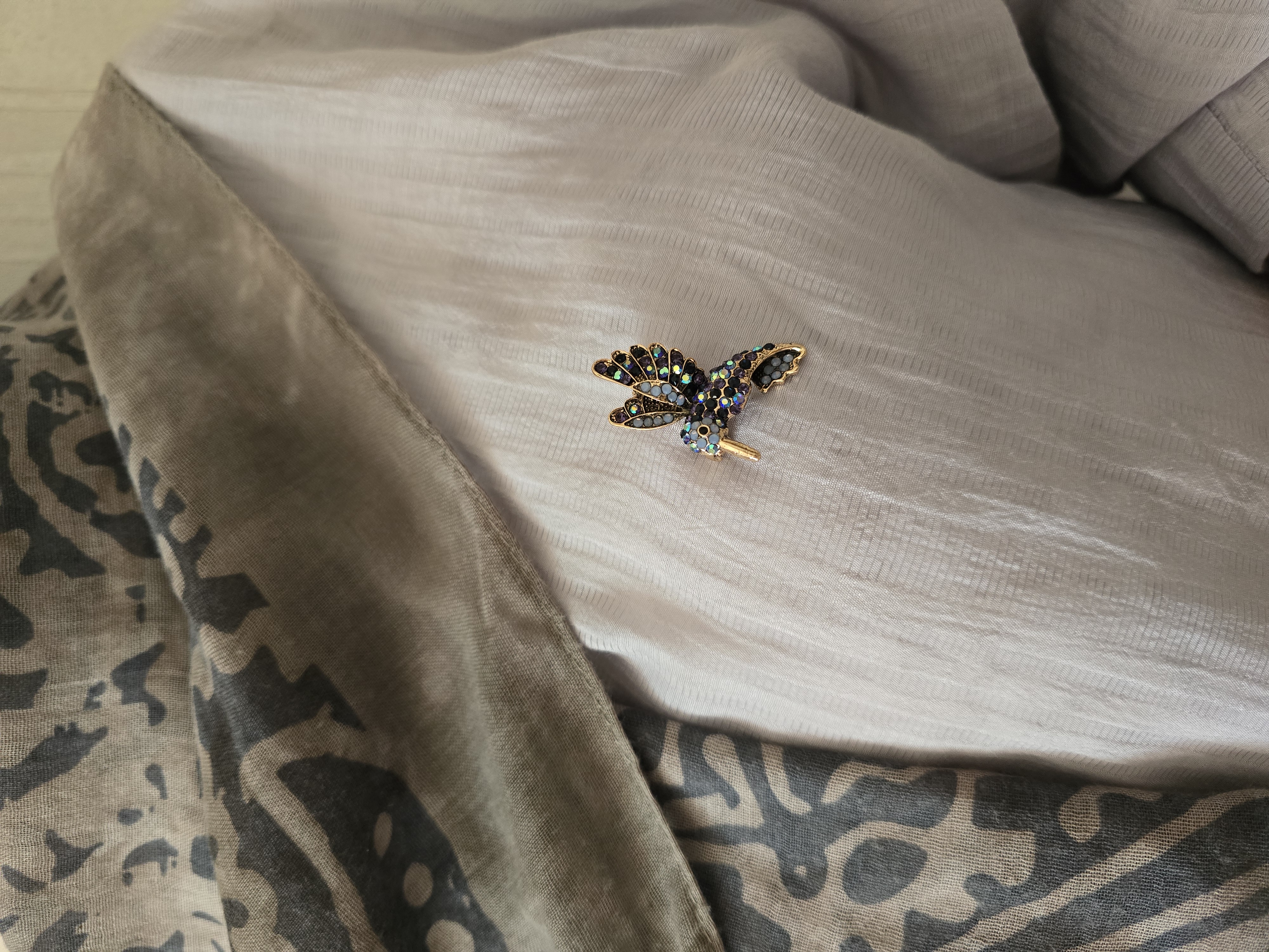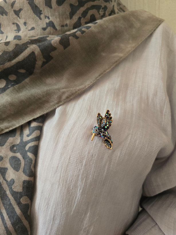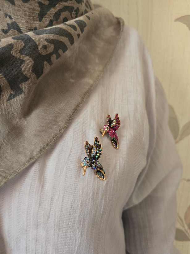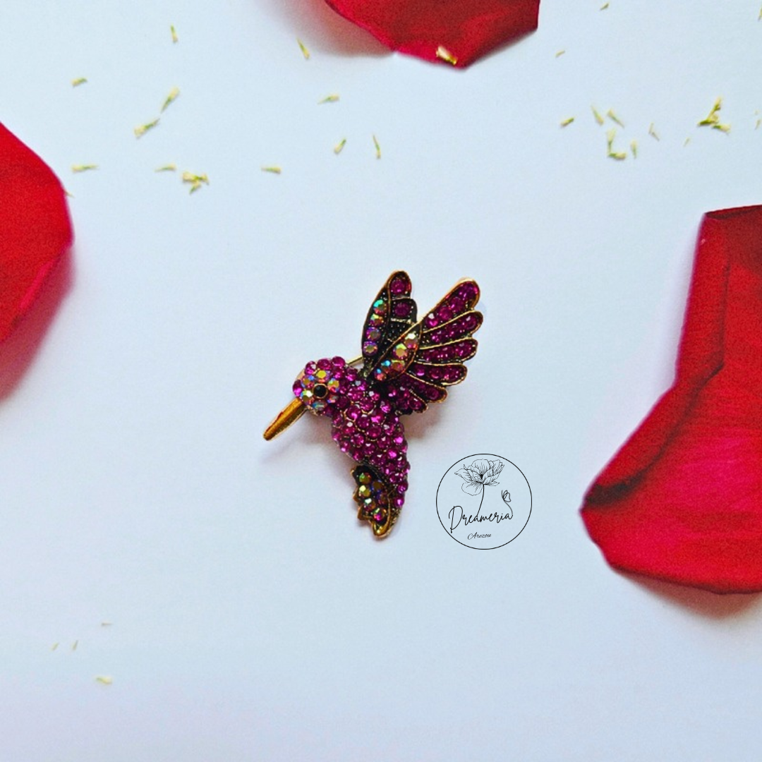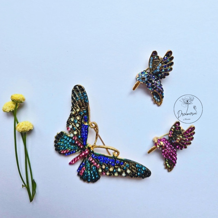 گل سینه پرنده و پروانه نگین دار فانتزی جنس رادیوم