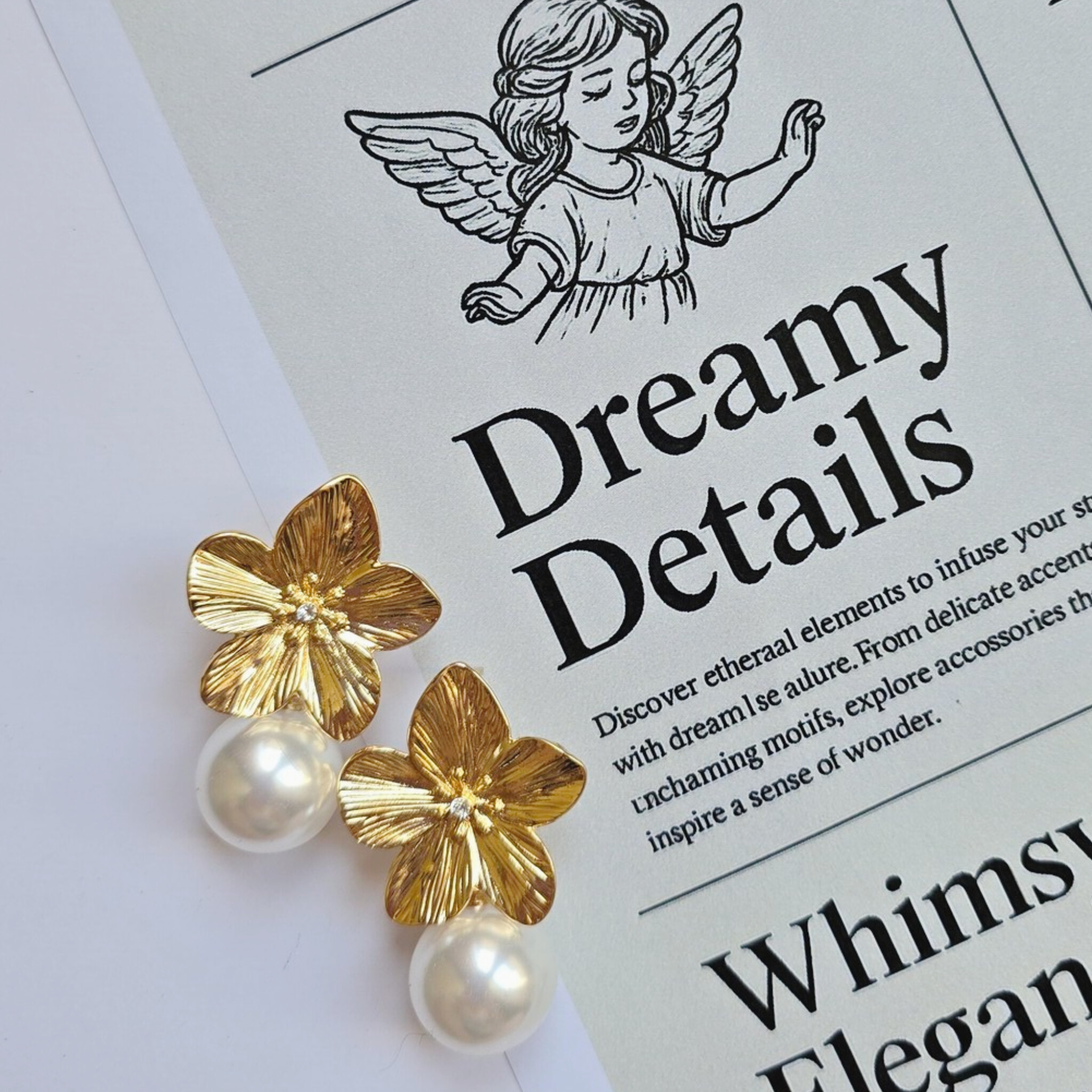 گوشواره گل جنس رادیوم با آویز مروارید