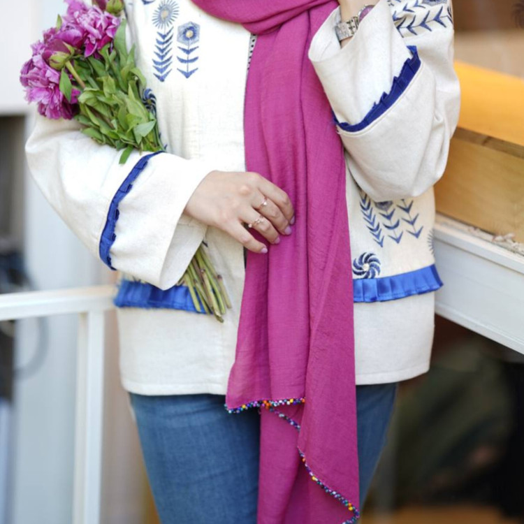 شال تابستانی نخی با دوردوزی سنگ های فانتزی رنگی در رنگ های شاد و جذاب مناسب هر استایلی.