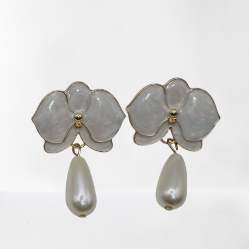 گوشواره طرح ارکیده کوچک با آویز مروارید سایز کوچک