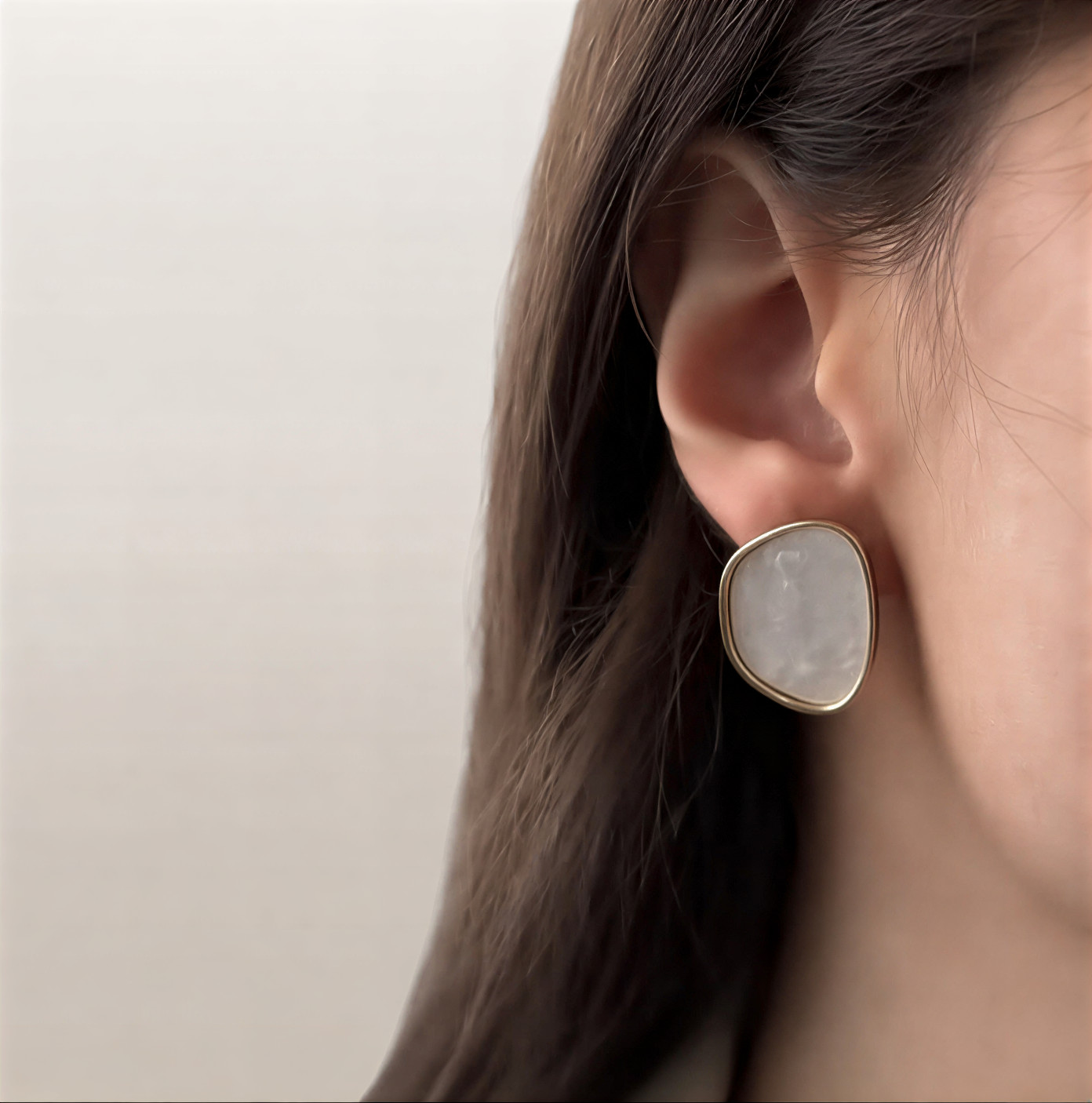 گوشواره رزینی مینیمال و مدرن سفید طلایی ساده و شیک